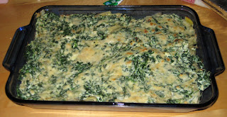 Given the success of the last pasta dish of hers that I tried, I decided to tempt fate again with her spinach-artichoke ravioli-lasagna. The idea behind this dish is that it is the lazy-man’s lasagna; ravioli are technically made up of layers of pasta and ricotta and so if you throw them in a casserole dish and bake them, maybe they’re kind-of/sort-of the same thing? No matter your opinion on the subject, ravioli is a total comfort food for me, stemming from the fact that my grandparents used to live in Little Italy in the Bronx and so we would get seriously AMAZING homemade ravioli whenever we went to visit. I used to have this ritual for eating them where I would bite off all of the edges first, saving the cheesy center for last. Need I say, it was predetermined that I would love this dish, merely because of the fact that it had ravioli in it.