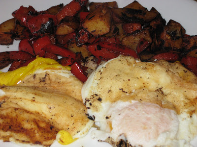 Eggs Sunny-Side Up with A Potato Bell Pepper Hash