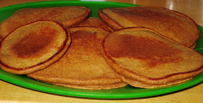 Even though I was not supposed to be cooking anything new last night, I felt like I needed a respite from my pasta so that I could really appreciate my last bowl of it tonight (something along the lines of absence making the heart grow fonder). However, I obviously didn’t want to have to buy any new ingredients. That left me with one option – pancakes! I remembered seeing a recipe on Closet Cooking about a decade ago for gingerbread pancakes and when I checked it out, I just happened to have all of the ingredients on hand. These pancakes were quite spicy (which I liked) and tasted like what I imagine a gingerbread-flavored quickbread would taste like. I made some changes to the recipe, using all white whole wheat flour (since that’s all we had) and subbing almond milk for milk. Next time I make these, I will probably add some nuts for crunch – maybe some pecans or walnuts. I think they would really add to the pancakes.