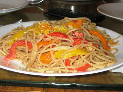 My mother always has bell peppers in the fridge and for the life of me I can’t understand why since neither my brother nor my father can eat them (they both claim that the acidity of ALL vegetables hurts their stomachs – except for potatoes).  I asked her about this yesterday and she replied, “Well, I like them”.  “But do you ever use the peppers that you buy?” I asked.  “I guess not,” she said.  Silence.