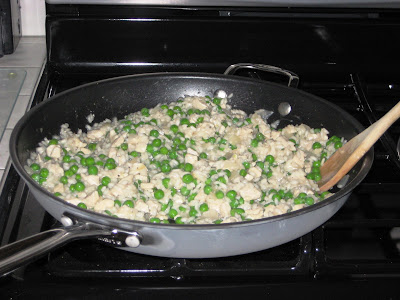 When I told my parents I was making risotto, they were all for it so I decided to make enough for the whole family. I originally intended to make a butternut squash risotto but my dad made a face at it, so I switched to a pea risotto. They also insisted there be some kind of meat in it, so I added some diced chicken. Notice how accomodating I was?