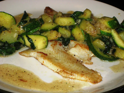 I was very excited when I saw that the theme for this month’s Monthly Mingle hosted by Jenny of All Things Edible was a Mexican Fiesta. I mean, who doesn’t LOVE Mexican food. I kind of wanted to avoid the usual taco/enchilada/tostada/etc. dishes, though, just because I can make those any old day. So I decided to turn to Rick Bayless’s Mexican Everyday. I took it out from my local library and bookmarked almost every recipe in it. Moral of the story: I am a glutton. So basically, I did what any sane person would do. I closed my eyes and opened up the book to a random page, vowing to make whatever recipe appeared before my eyes. Lo and behold, it was his Seared Snapper with Zucchini and Toasty Garlic Mojo. Snapper was really expensive, though, so I went with flounder. It was amazing. Like really good. He has you pan-roast the garlic until it is creamy and heavenly and then he has you make a sauce out of it and then you eat it and love it. It was a fiesta in my mouth. Seared Flounder with Zucchini and Toasty Garlic Mojo