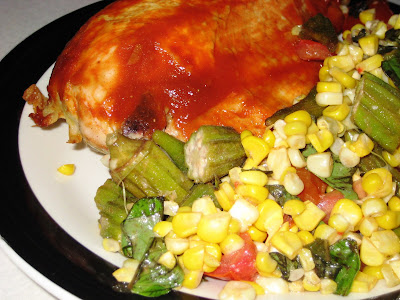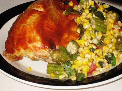 Looks great, Joanne! I do love me some barbequed chicken. I had okra out of my garden this week, too! I used it in a Tyler recipe, that I will NOT post because (can’t believe I’m saying this) it was so bad. Yeah, it was gross. Not the okra, but the actual DISH. I love okra though – yours looks great!