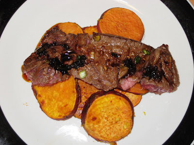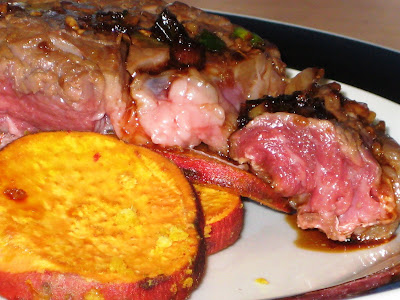 Your steak looks perfectly cooked and the lemon-ginger sweet potatoes sound fantastic!