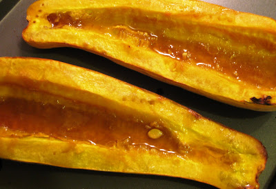 I’m going to try making this the way I cook acorn squash: fill the cavity with butter and then put in applesauce. Top the applesauce with a little cinnamon and brown sugar and bake as Joanne suggests but, at the last minute, broil a bit to make it crusty and brown.