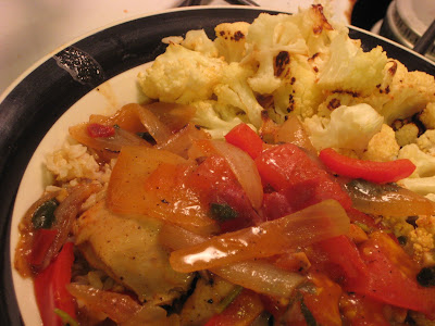 Preheat the oven to 425. Spread the cauliflower out on a baking sheet and roast for 15 minutes.