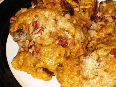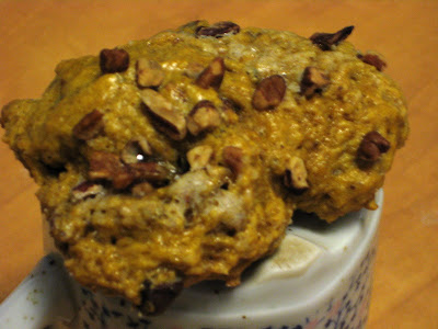 And how did they compare? Well, mine were slightly smaller than the Alice’s Tea Cup version (which I think my body thanked me for), plus I added in chocolate chips and pecans. So they were different. But still good. The spices in them reminded of the holidays and the hint of pumpkin made me envision all of the fall desserts that are looming in the imminent future. Forget sugar plums, I have visions of pumpkin cheesecake, apple pie, and sweet potato muffins dancing in my head.