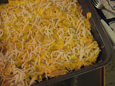 7. Beat an egg with 1/4 cup almond milk. Mix into the conglomeration described above. Top with the other half of mozzarella.
