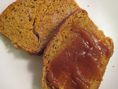 I enjoyed the bread with a smear of pumpkin butter on it and last night also made some cranberry chutney to smother it in (more on that in a later post), which reallycomplemented the flavor profile of the bread.