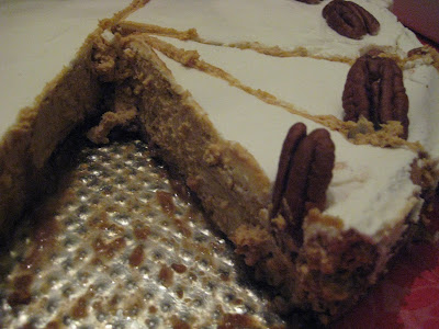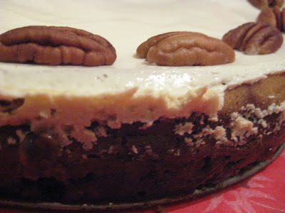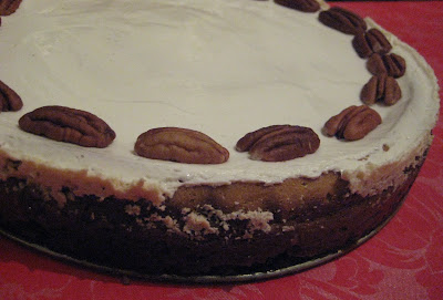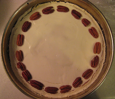 That looks delicious. I am very impressed at how evenly spaced those pecans are. I am spatially-inept and if I had decorated your cheesecake, it would not look nearly that pretty.