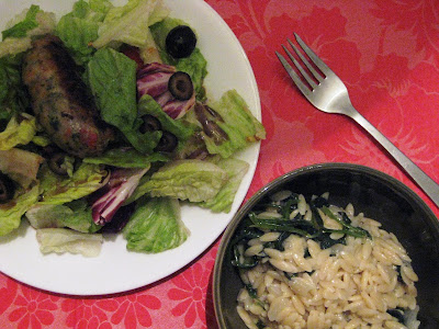 Its funny, Orzo to me means Barley, but I know its also the name of the pasta shaped like rice. We call it Risone for some strange reason. Looks delicious with the Spinach, as do the Italian sausages. lol@ your Mum, all Italians seem to be the same no matter where they live, must be genetics. lol…
