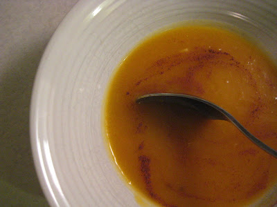 3. Slice the squash in half lengthwise. Deseed and depulp. Use a spoon to scoop the insides into a bowl. Discard the skin. Puree the squash with the onion and broth. (I immersion blended it.) Pour into the slow cooker. Add the brown sugar. Add ginger and nutmeg to your heart’s content. Season with salt and pepper. Cook on high for 1 hour.