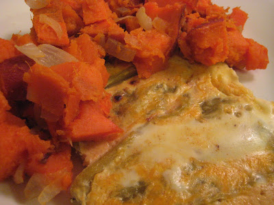 breakfast sweet potatoes sound yummy and I love chile rellenos! A yummy meal at any time of the day!