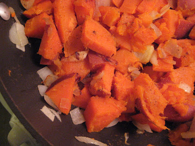 5. Bake for 35-45 minutes.As you can see, the Sweet Potato Queen in me has reared it’s ugly head again. Ree used white potatoes. But it has really been too long since I’ve had sweet potatoes. Mostly due to the fact that my attention has been occupied by a certain other orange vegetable. Which I won’t name for fear of setting the sweet potatoes off on a jealous temper tantrum. The sweet potatoes were delicious in this though and contrasted really nicely with the spicy/saltiness of the eggs. Which were fabulous.