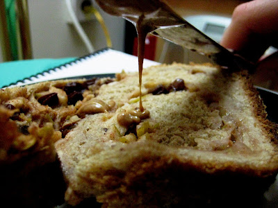 I just wanted to reach thru my computer screen and eat that bread! It looks wonderful, and I love your photography. My mouth was watering looking at the dripping peanut butter. Actually, I thought it was caramel (OMG, maybe I really am becoming a Southerner!).