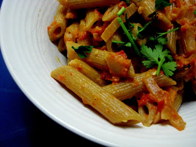 Moral – If you’re going to go out on a blind date. Make sure it’s with a fellow food blogger. You might still go home broke and alone. But at least you’ll have had a good meal. And the beginning of a lasting relationship.Pasta with Roasted Red Pepper Sauce