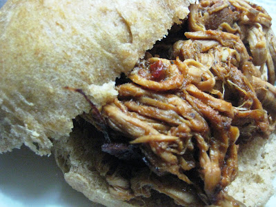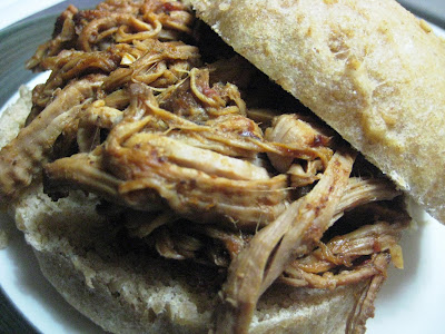 I used the crockpot method but this time instead of using storebought barbecue sauce, I decided to make my own. No high fructose corn syrup crap for me. Instead, I made this Texas Barbecue Sauce Recipe from Bon Appetit. The only thing I changed was to use tomato sauce instead of ketchup (The smell of ketchup makes me gag. So there is no way it is allowed in my kitchen. Ever.) And it was fantastic. Just the right amount of sweet and spicy to make me swoon.