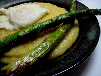 Gorgeous polenta. fresh green asparagus is just a short time away.