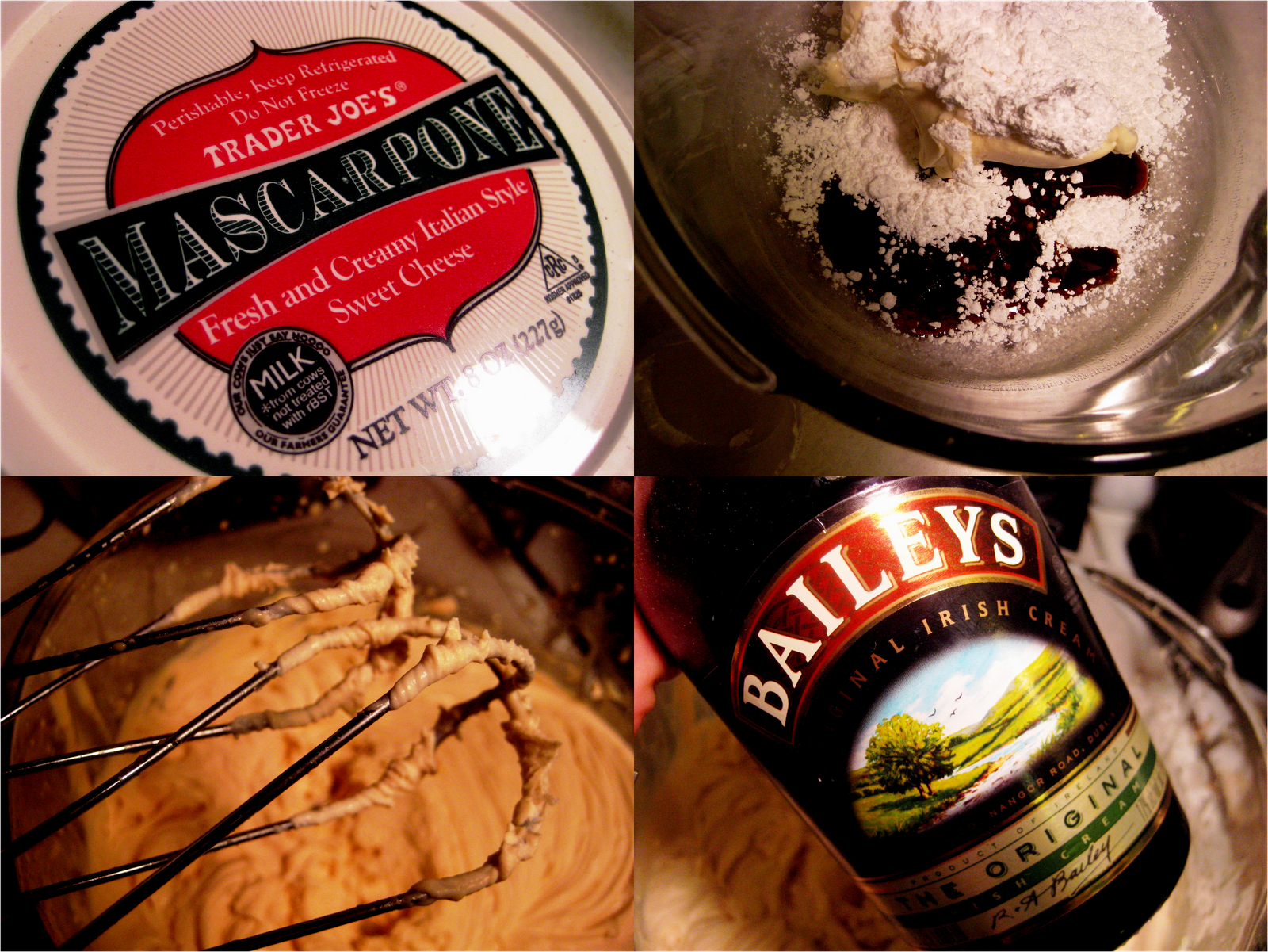 (c) cocoa powder, vanilla-scented mascarpone, Bailey’s- and coffee-infused ladyfingers, followed by another dreamy set (can you have too many) of vanilla-scented mascarpone, Bailey’s- and coffee-infused ladyfingers