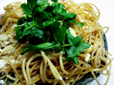 Yummm, that pasta looks good. So nice to see a pasta without red sauce (though I love that as well!). Nice bright flavors. Good brain food!