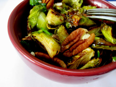 NOTE – I didn’t actually fry the brussels sprouts. I just couldn’t. Instead, I baked them. I also used pecans instead of walnuts because I still have half of a huge bag of pecans that I bought from BJ’s. And no bags of walnuts. And because I am trying to be somewhat frugal. I also cut out a lot of the olive oil.
