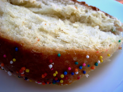 soft like a pillow, that’s what your loaf seems to be. cloud-like and a pleasure to eat, no doubt. even the sprinkles are perfect–it’s like they automatically make ya feel like a kid again. 🙂