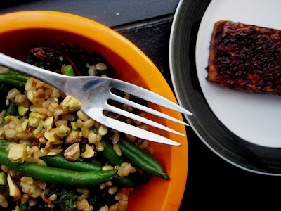 Coconut Rice with Swiss Chard, String Beans, and Pistachios