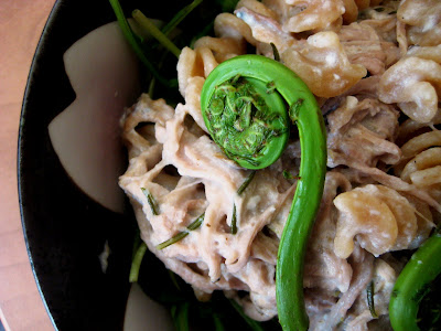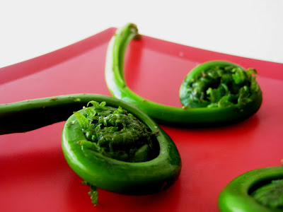 There are fiddleheads everywhere. They pop up on the blogsphere no matter where you turn. They add such great color to a dish.