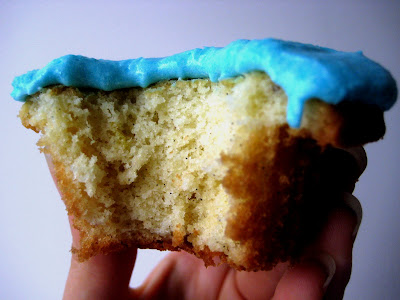 Joanne, I promise you that if you offer to make me ANYTHING I WANT in the world, I will ask for more than vanilla on vanilla action. Despite having a limited palatte with which to work, you have created a deliciously blue cupcake that has me wanting one NOW!
