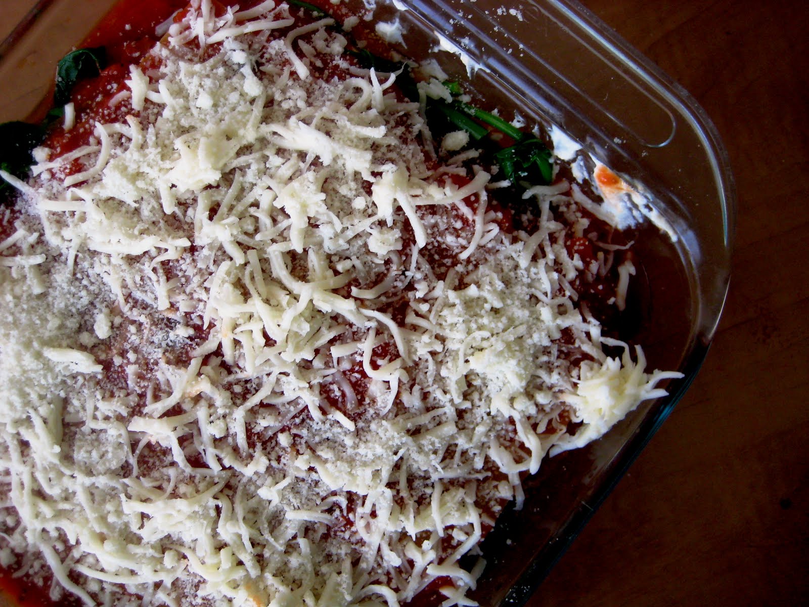 But OK. I love lasagna. But what I like most about yours is the amount of green, healthy veggies in it! My immune system is perking up just looking at it!