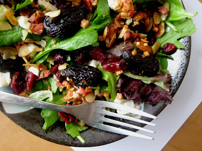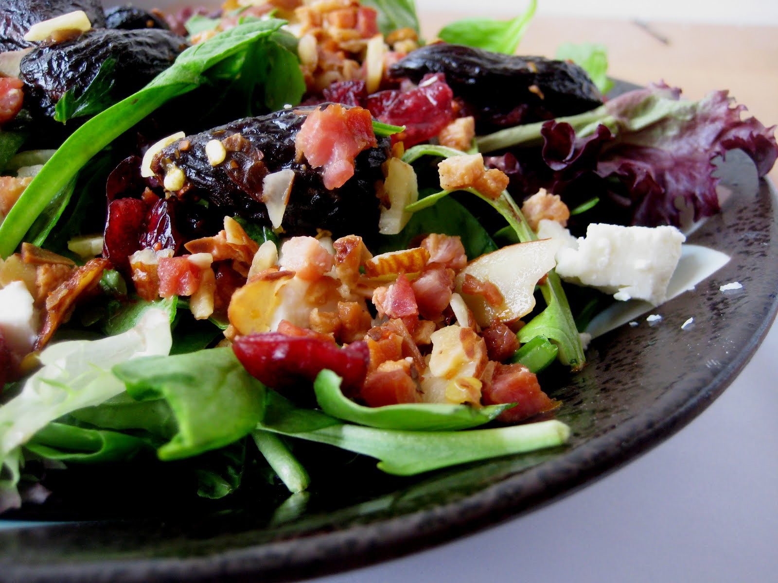 This salad looks so delicious! Goat cheese is an automatic win. With figs, even better. Throw some glorified bacon on there and I’m wishing the screen had that function where I reach in and pull out the salad as it appears on the screen. I don’t even care if you’ve already had a few bites.